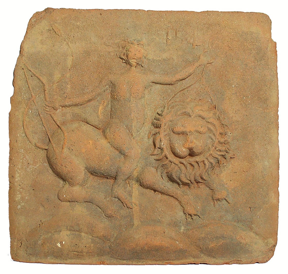 В русском искусстве XVIII века, в том числе и в изразцах, широкое распространение получили различные аллегорические образы и эмблемы. В Новом Иерусалиме эти сюжеты на рельефных изразцах появились задолго до массового производства расписных изразцов с подобными сюжетами во второй половине столетия.