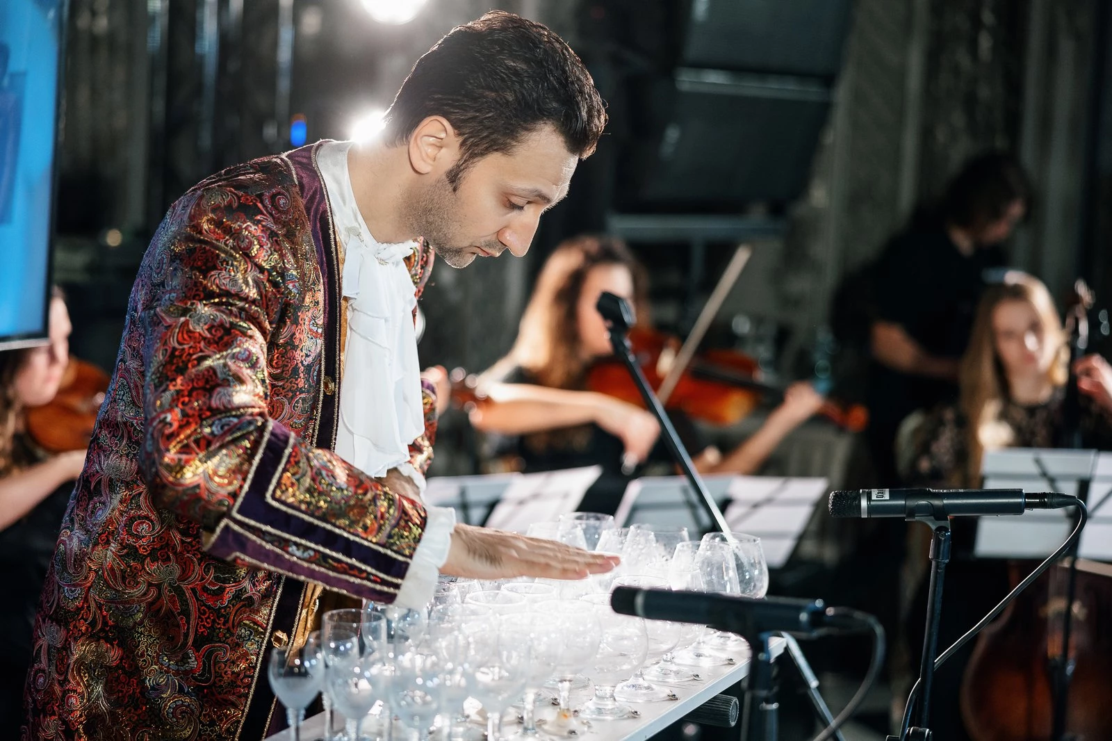 Александр Лемешев — широко известный музыкант-виртуоз с мировым именем, демонстрирующий виртуозную игру на необычном инструменте, который называется «стеклянной арфой» (игра на бокалах).
