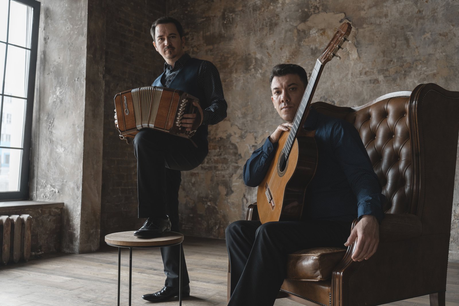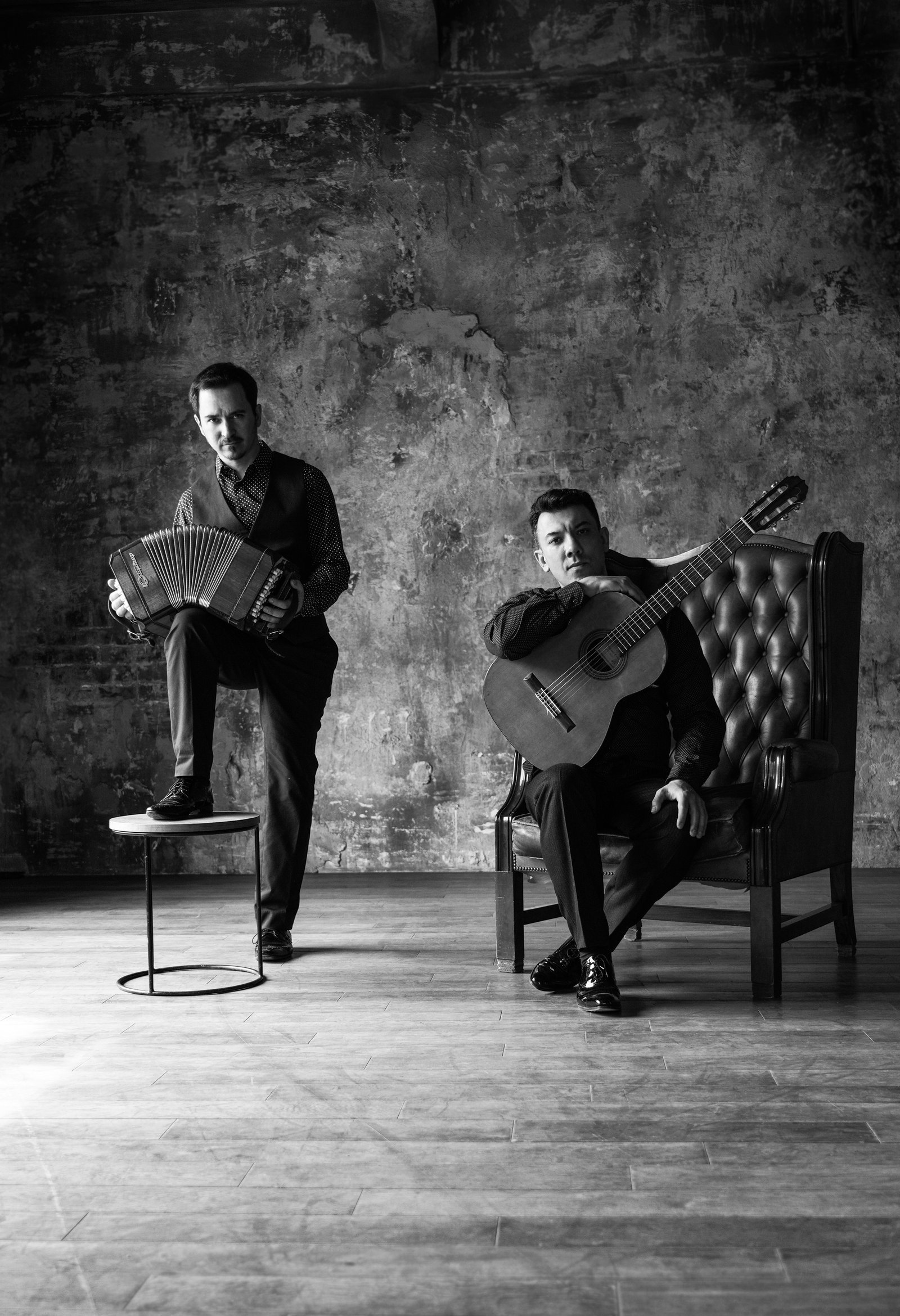 Владислав Домогацкий (гитара) и Максим Фёдоров (баян и бандонеон) успешно реализовали себя как сольные исполнители и создали инструментальный дуэт, аналогов которому сейчас в России нет. Максим Фёдоров играет на уникальных инструментах ручной работы — баяне и бандонеоне фабрики «Юпитер», творении выдающихся российских мастеров. Владислав Домогацкий играет на инструменте мастера Владимира Дружинина.