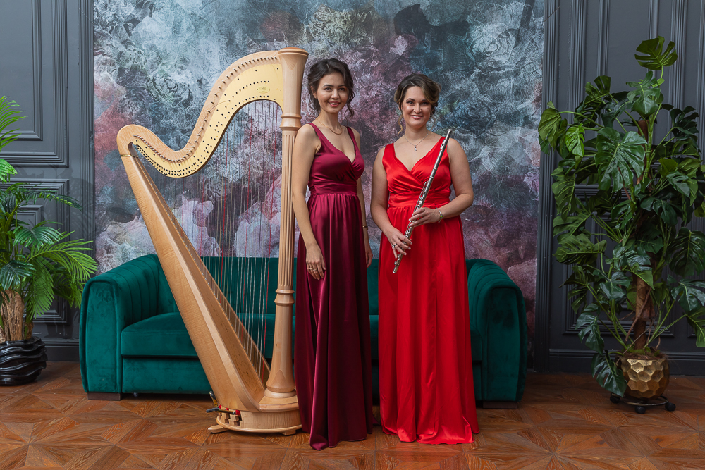 На сцене выступили Айдана Карашева (арфа) и Нина Лиманская (флейта).