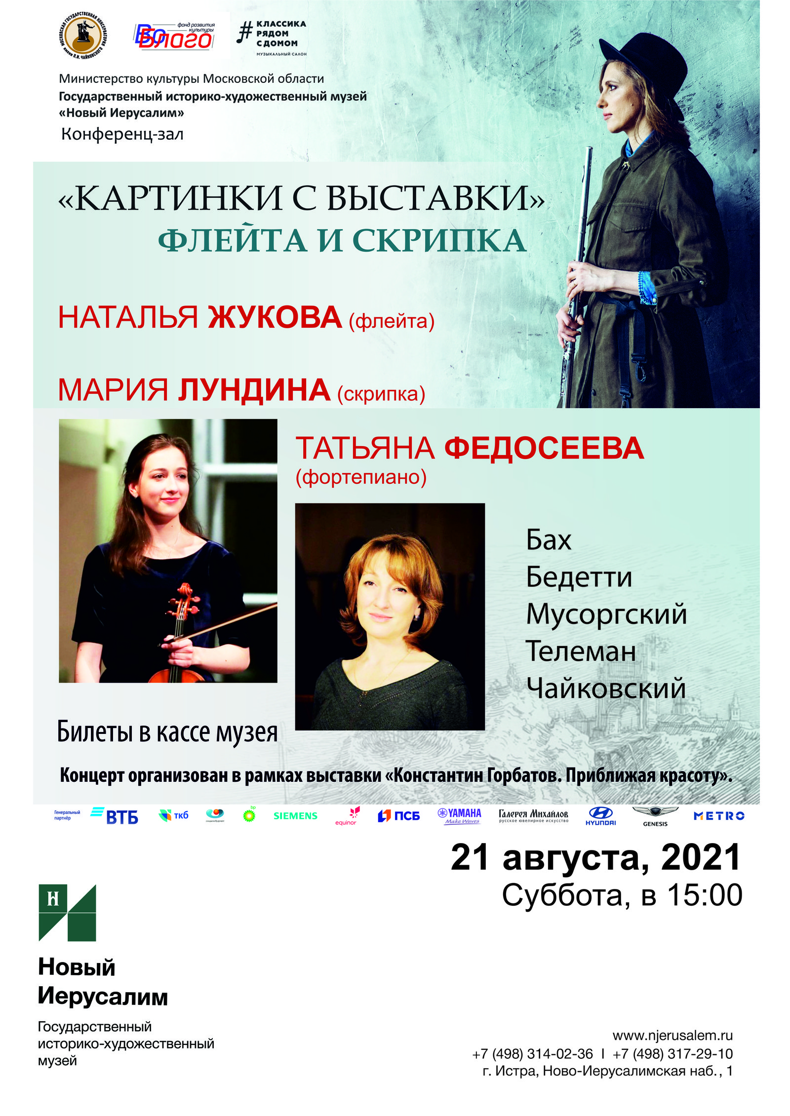 Музыкальный салон «Классика рядом с домом» и Государственный историко-художественный музей «Новый Иерусалим» 21 августа в 15.00 представили концерт в Конференц-зале музея в рамках цикла «Картинки с выставки». В стоимость билета входило посещение экспозиции «Константин Горбатов. Приближая красоту».