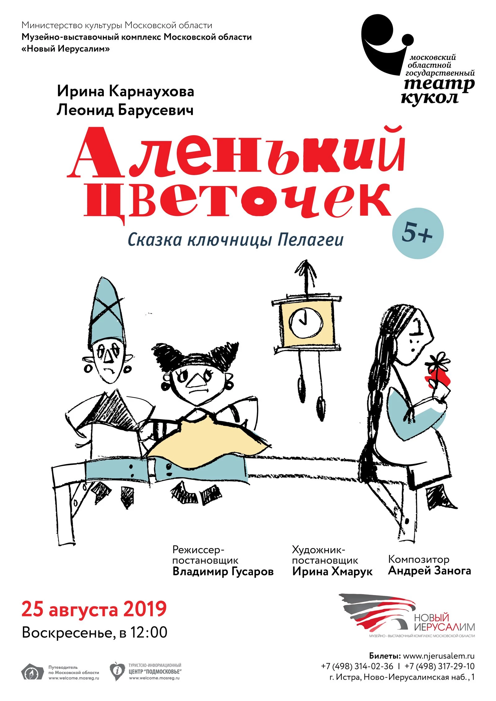 25 августа в 12.00 на сцене музейно-выставочного комплекса «Новый Иерусалим» Московский областной государственный театр кукол представил зрителям известную и всеми любимую сказку С. Т. Аксакова «Аленький цветочек».