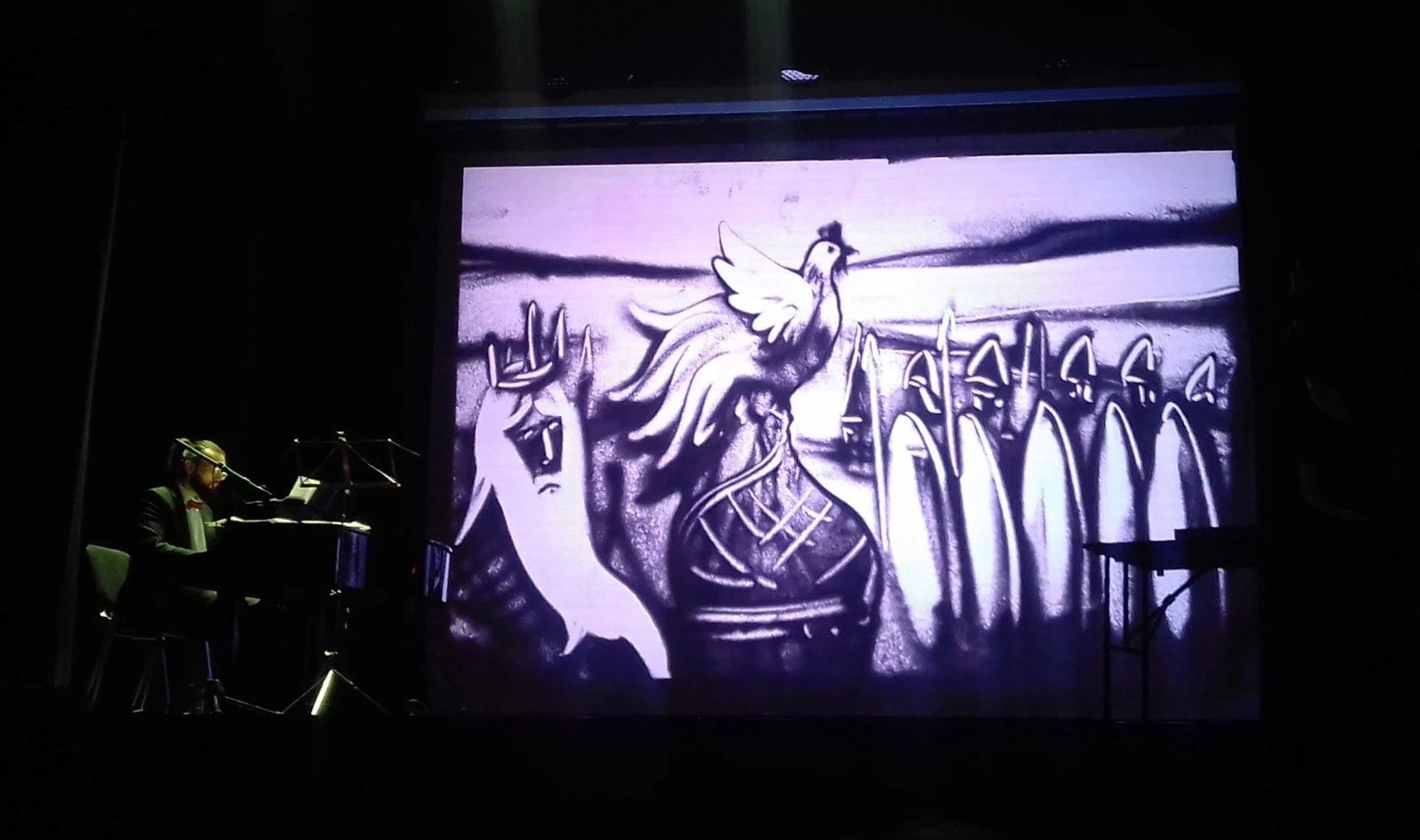 Под волшебные звуки флейты, гобоя, английского рожка и фортепиано — прямо перед зрителем, под руками мастера возникли необыкновенные картины из песка. Казалось, что сказка рождается прямо здесь и сейчас.