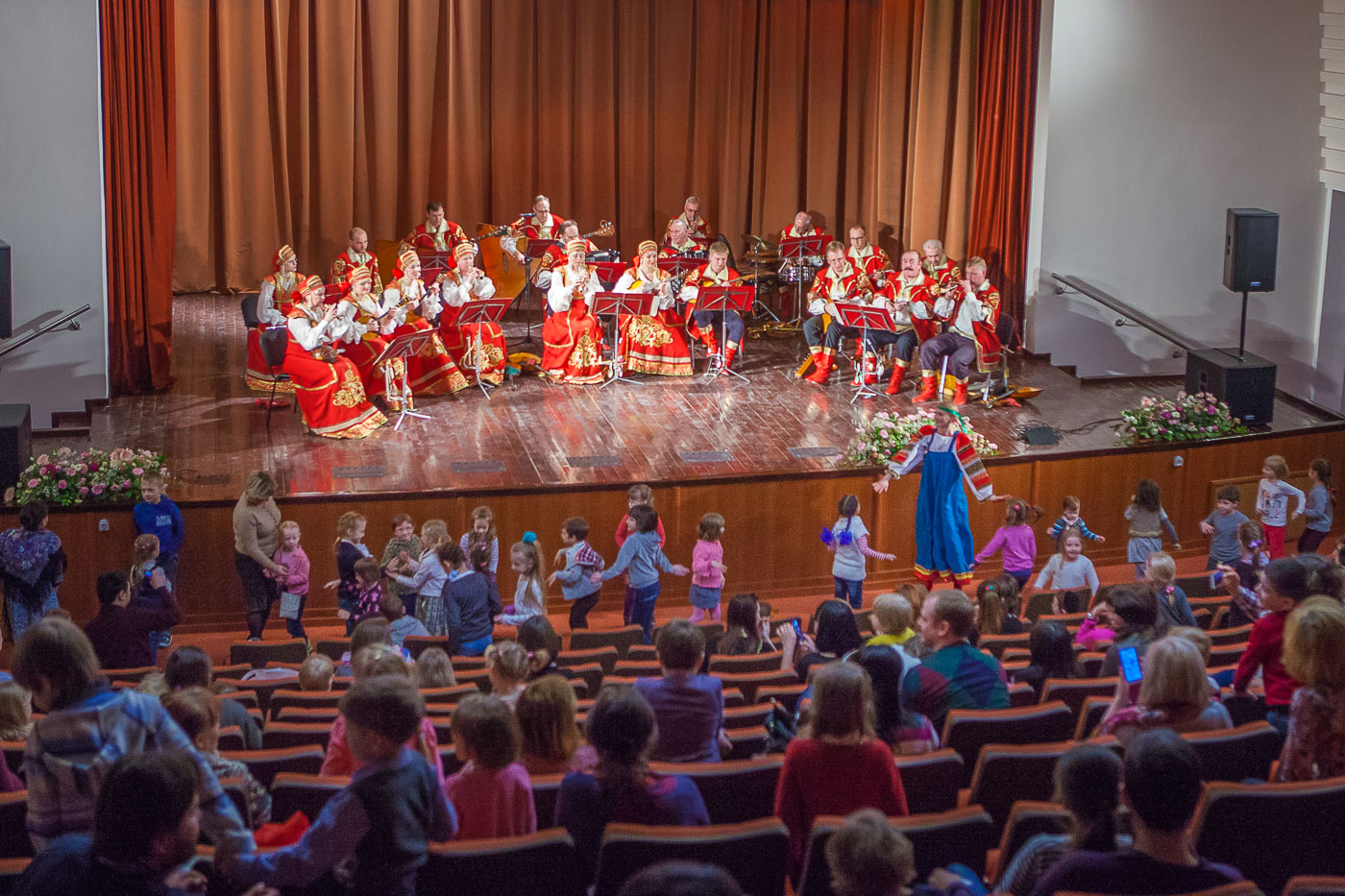 Юные зрители вместе с оркестром и героями сказочной истории отправились в путешествие по мотивам русских народных сказок. Со смелым Иванушкой им предстояло преодолеть немало препятствий, найти друзей, отгадать множество загадок, чтобы вызволить Машеньку из башни, в которую её заточил Кощей Бессмертный.