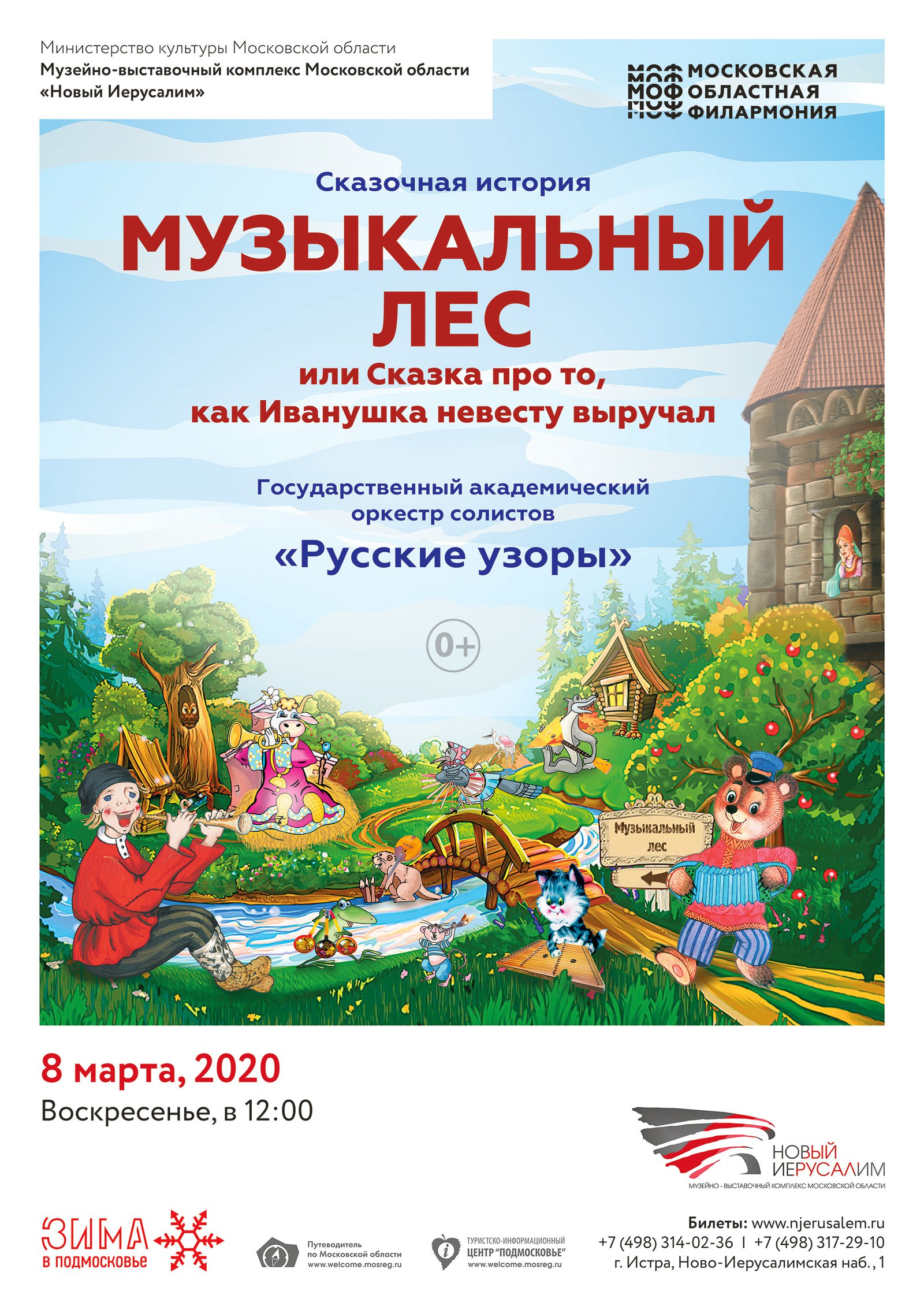 8 марта в 12.00 в музейно-выставочном комплексе «Новый Иерусалим» состоялся интерактивный музыкально-образовательный спектакль Московской областной филармонии — сказочная история «Музыкальный лес», или «Сказка про то, как Иванушка невесту выручал».