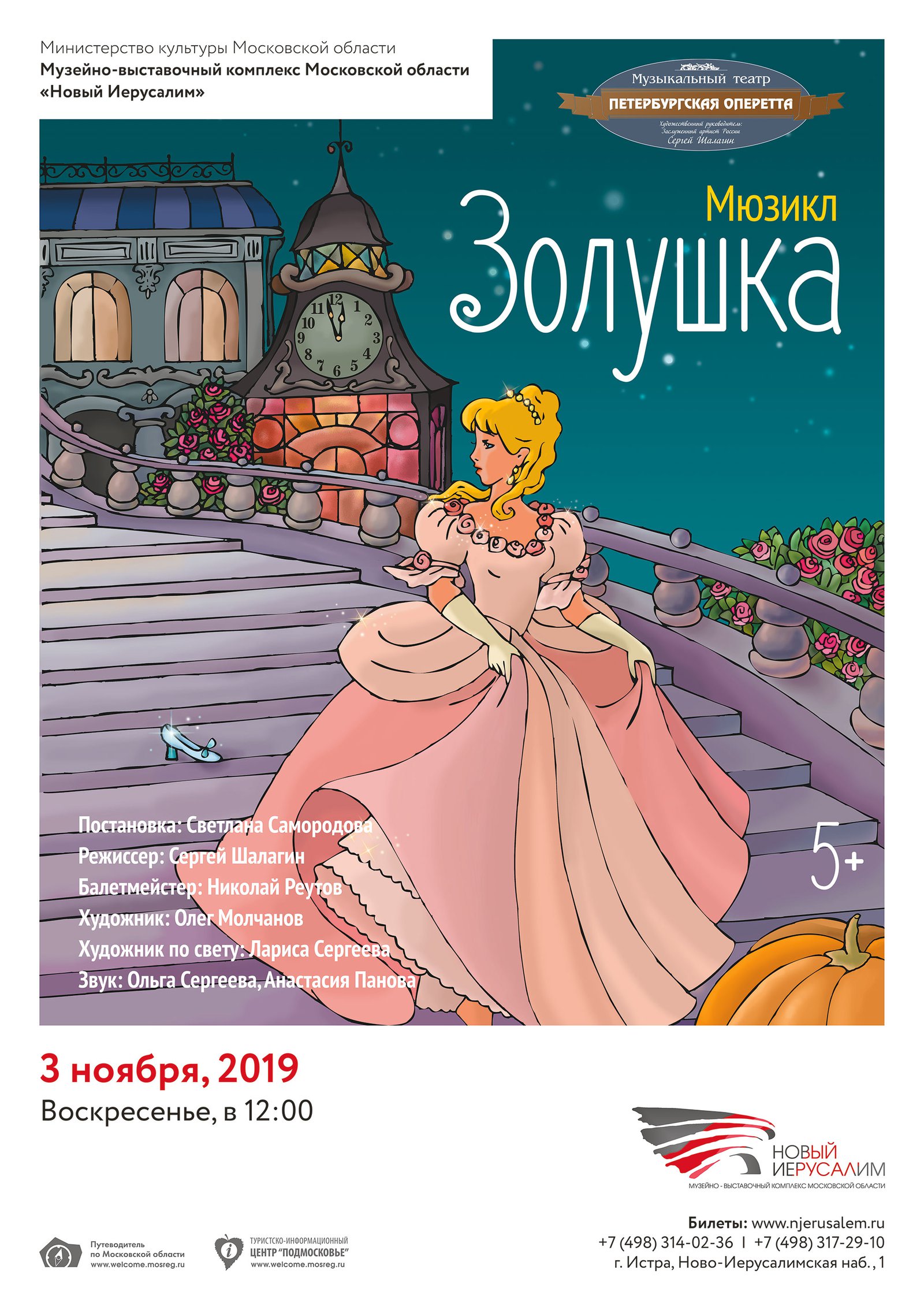 3 ноября в 12.00 на сцене музейно-выставочного комплекса «Новый Иерусалим» состоялся мюзикл «Золушка» (5+) от музыкального театра «Петербургская оперетта» Сергея Шалагина.