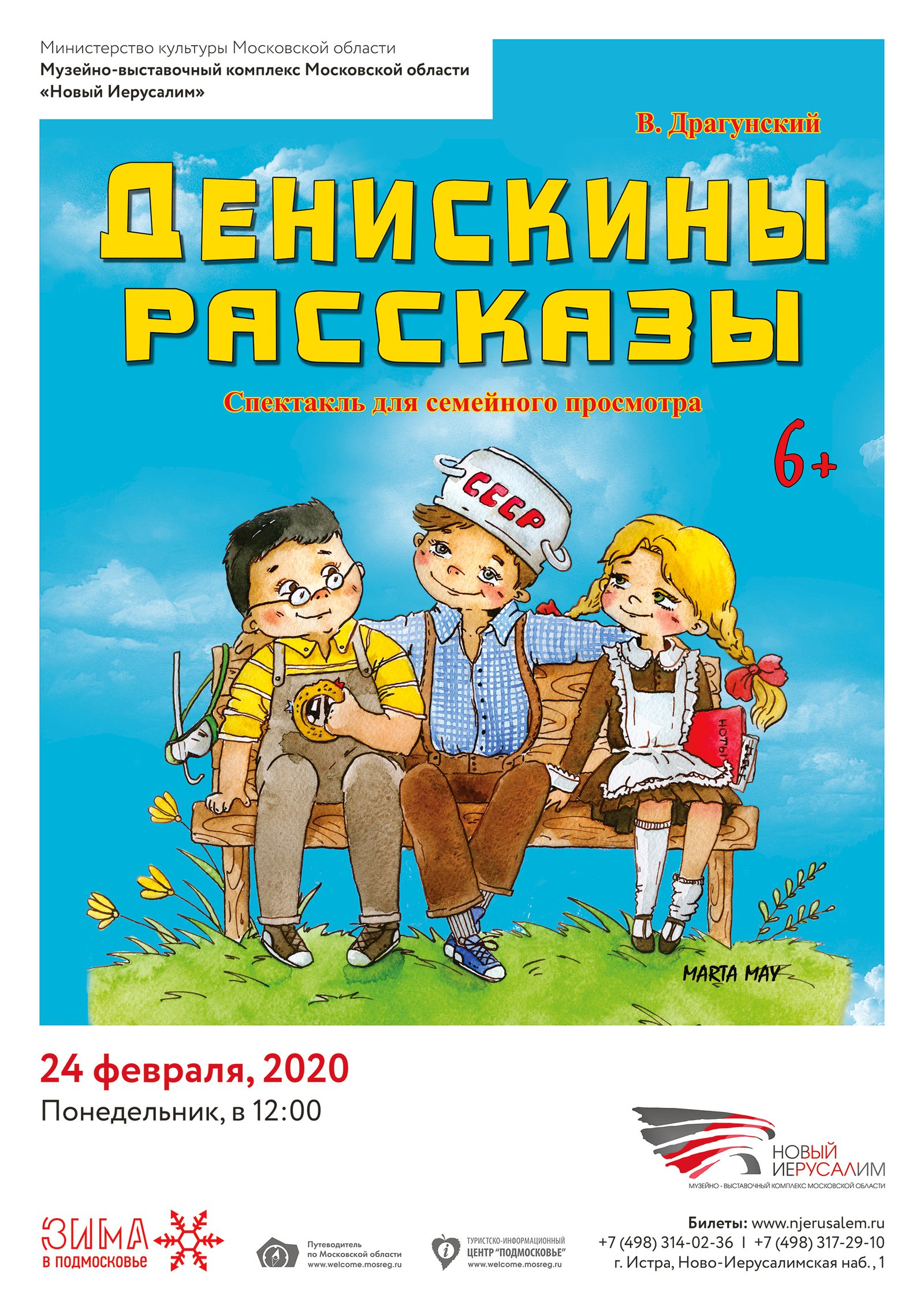 24 февраля в 12.00 на сцене музейно-выставочного комплекса «Новый Иерусалим» весёлый детский спектакль по рассказам советского писателя Виктора Драгунского о приключениях из жизни дошкольника, а затем ученика младших классов школы Дениса Кораблёва.