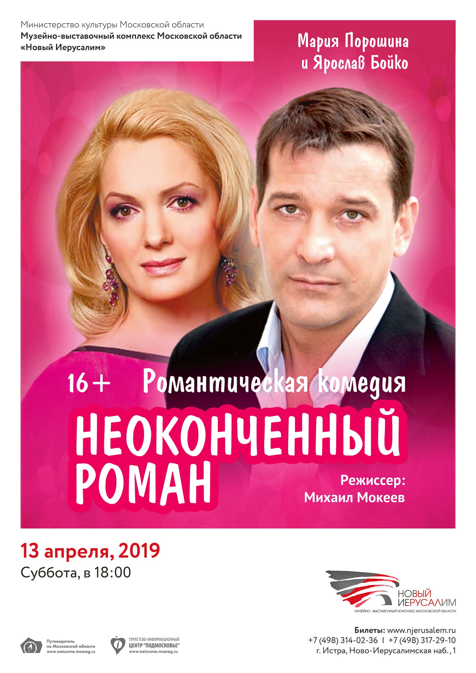 13 апреля в 18.00 герои полюбившегося сериала «Всегда говори всегда» вместе предстали на одной сцене в музее «Новый Иерусалим». Известные Российские актеры Ярослав Бойко и Мария Порошина на время станут героями занимательной любовной истории «Неоконченный роман». Именно такое название носит новая романтическая отечественная комедия.