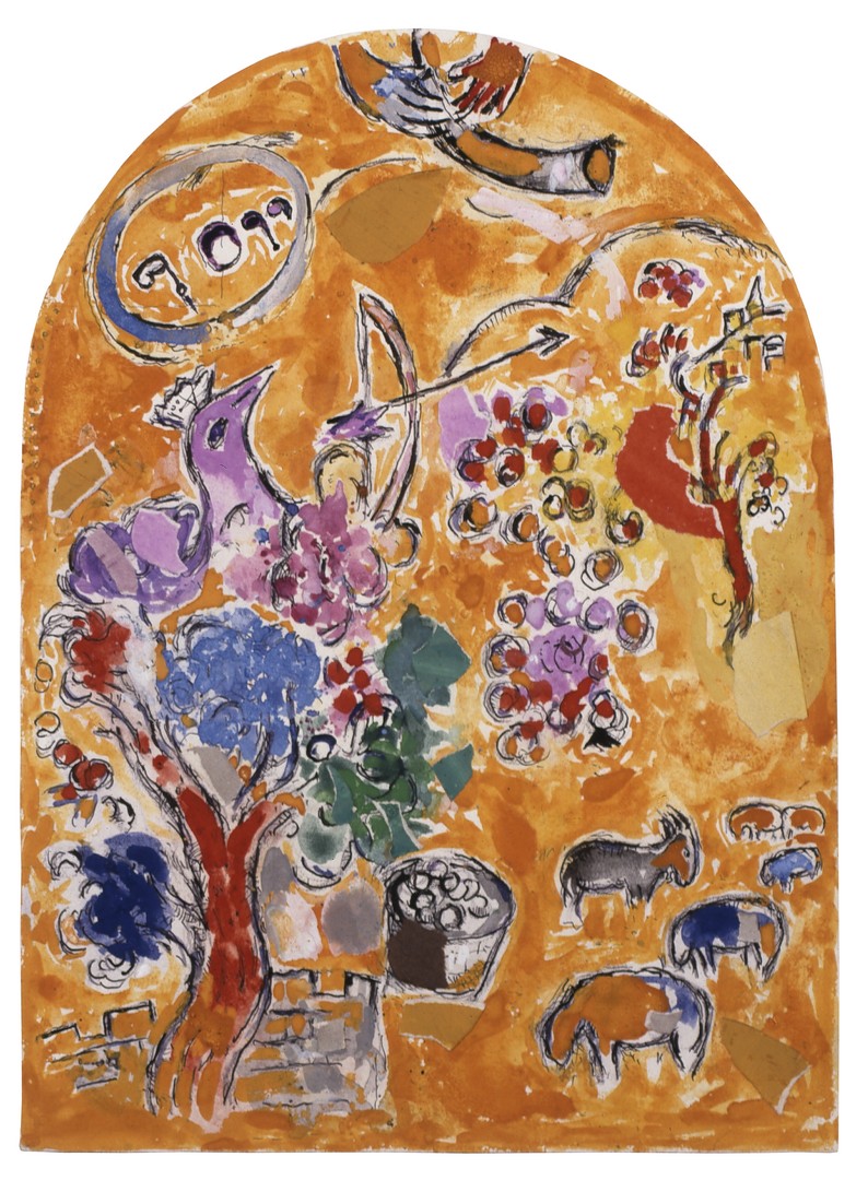 Двенадцать колен израилевых. Подготовительная работа к витражам синагоги госпиталя Хадассы в Иерусалиме. Колено Иосифа. Окончательный макет. 1959-1960. Частное собрание. © ADAGP Paris 2019 Chagall ®
