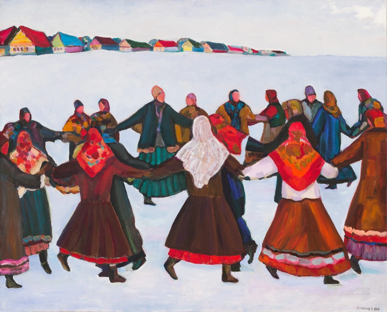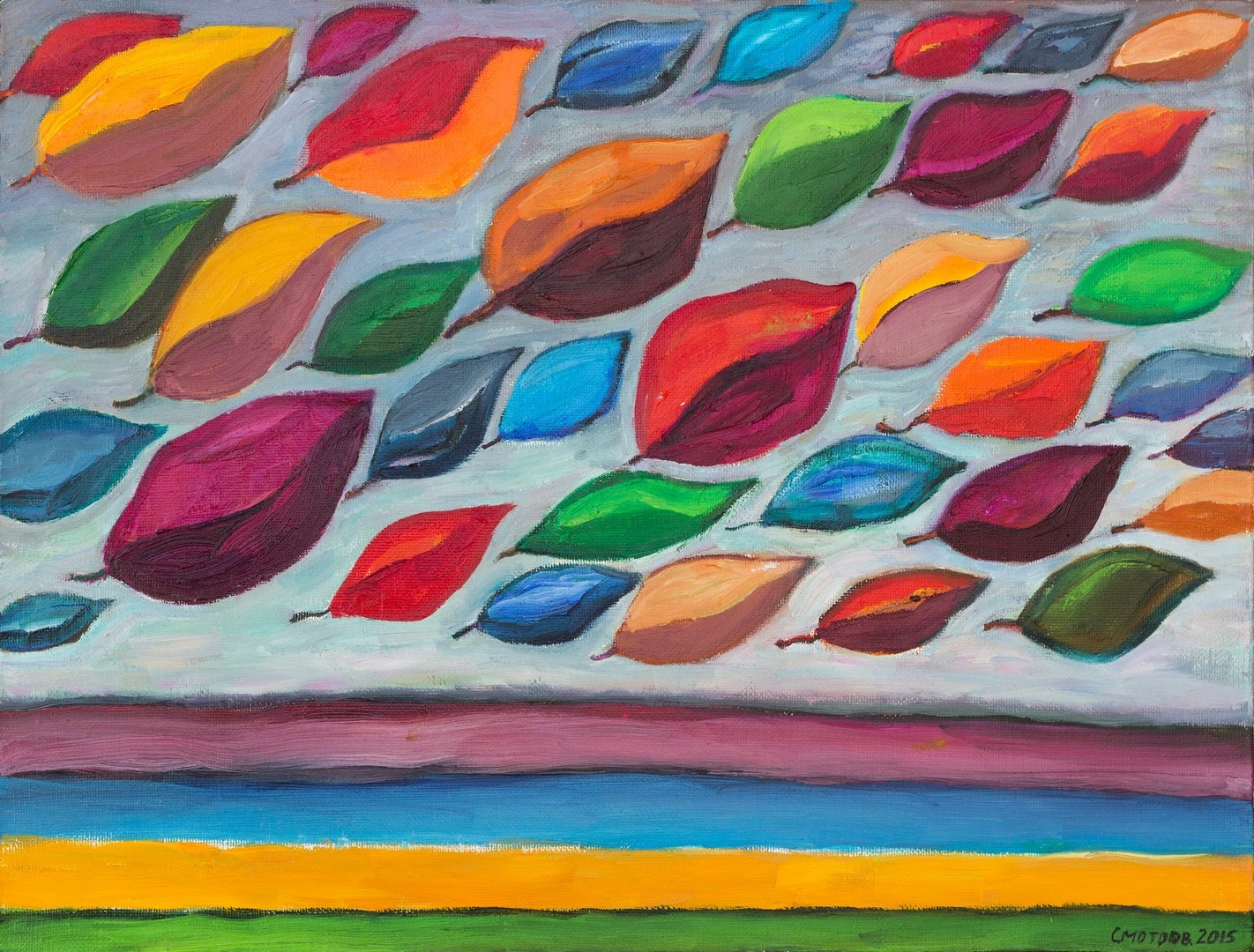 Творчество Смотрова поражает яркостью, красочностью цвета, словно пламенеющего, горящего, определяющего смысловое содержание. Этот колористический дар, присущий Смотрову, ощущается со всей ясностью и фантазией. Он постоянно экспериментирует, работая в свободном поиске формы и цвета, обобщает, доводит до крайней стилизации. Так формируется своеобразный стиль Бориса Смотрова и происходит в его искусстве самое главное, самое важное — поиск своей темы, своих выразительных приемов, связанных с народным творчеством и великими художниками русского авангарда
