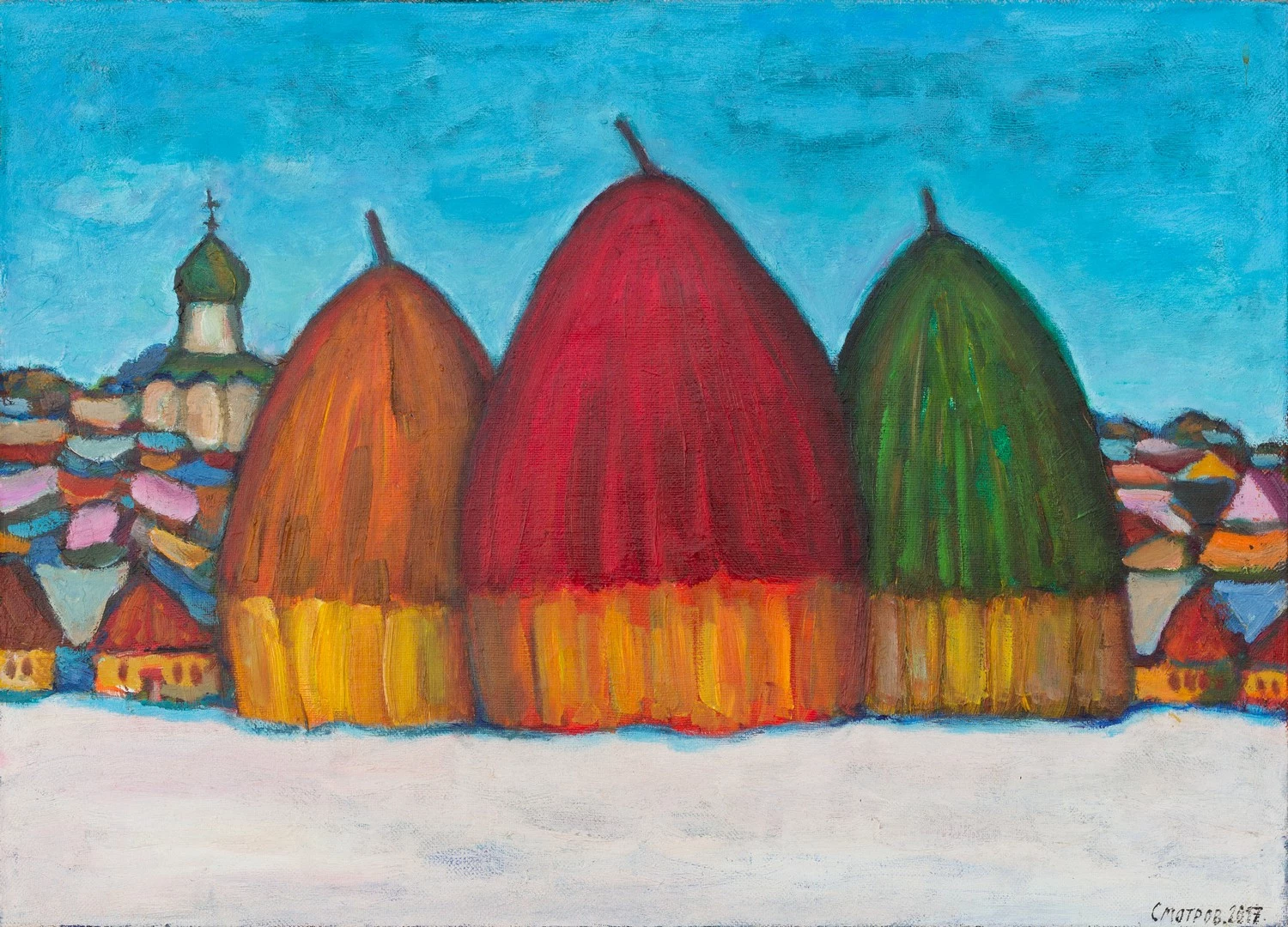 Удивительно, что в изобразительных высказываниях этого мастера начала XXI века сохраняется чистота и непосредственность, незамутненная холодными постмодернистскими изысками и искусами, ироничным цитированием, свойственным большинству его современников. И все же его живопись и есть порождение постмодернизма, поскольку в ней переплавились и слились воедино многие явления искусства разных времен, которые художник умело апроприировал, сделав их частью своего пластического метода