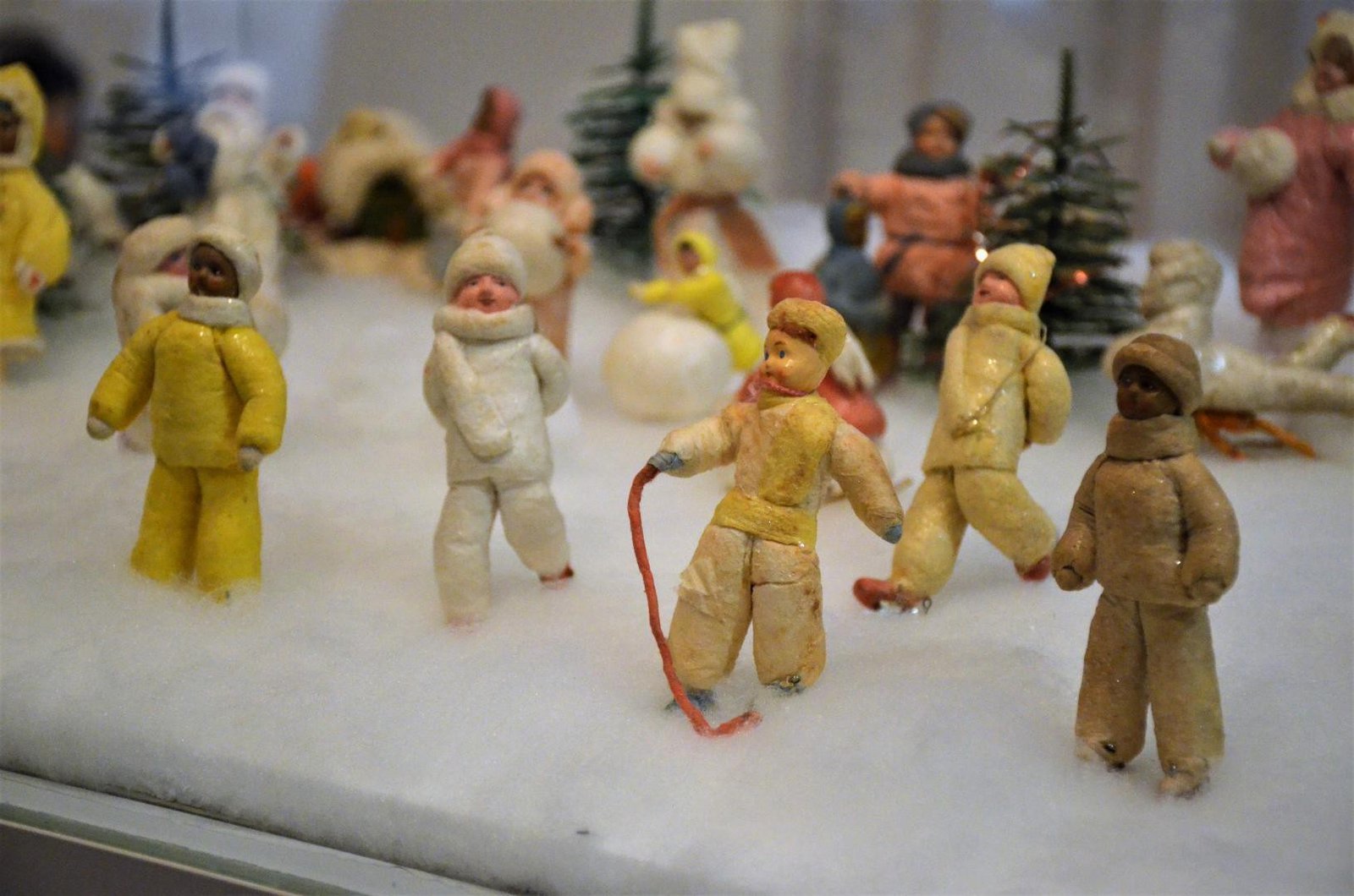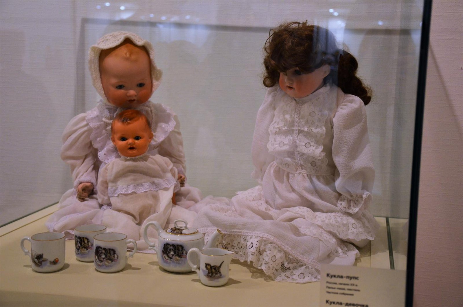 В разделе о новогодних подарках особого внимания заслуживали дореволюционные и советские куклы. Антикварные куклы, в основном, немецкого производства. Они разнообразны по типу и материалу. Советские куклы Загорской и Нахабинской фабрик в основном изготовлены из папье-маше. Они хорошо передают атмосферу 1960-х годов, когда одной из установок времени был девиз: «Всё лучшее — детям».