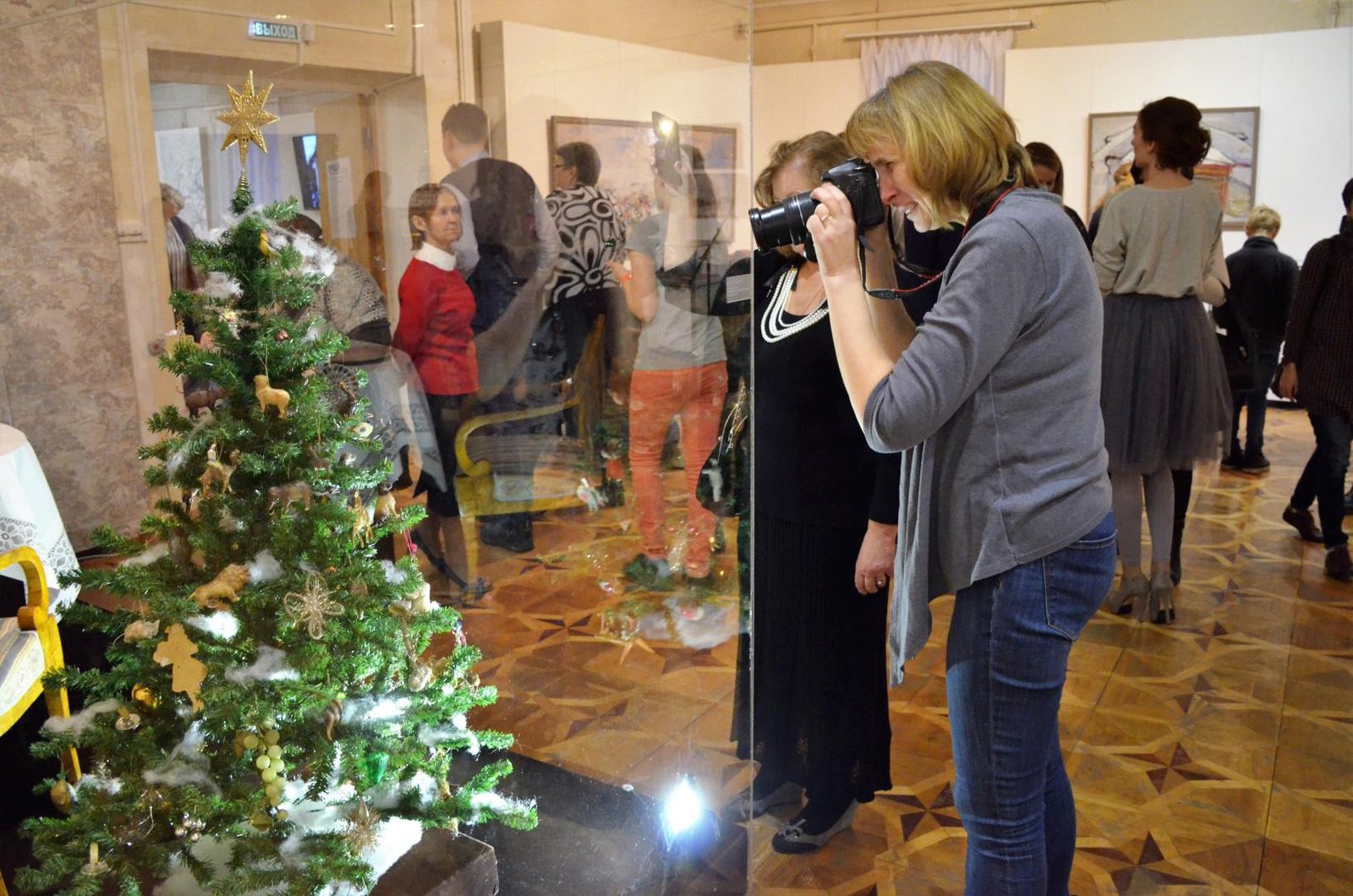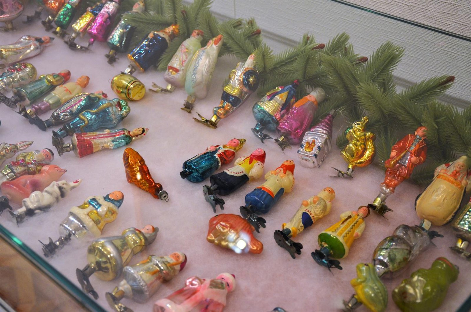 На выставке были представлены две ёлки. Одна из них, в рождественском интерьере, была украшена ёлочными игрушками конца XIX — начала XX века, среди которых выделялись изделия дрезденского картонажа. Другая ёлка демонстрировала многообразие игрушек, созданных в СССР.