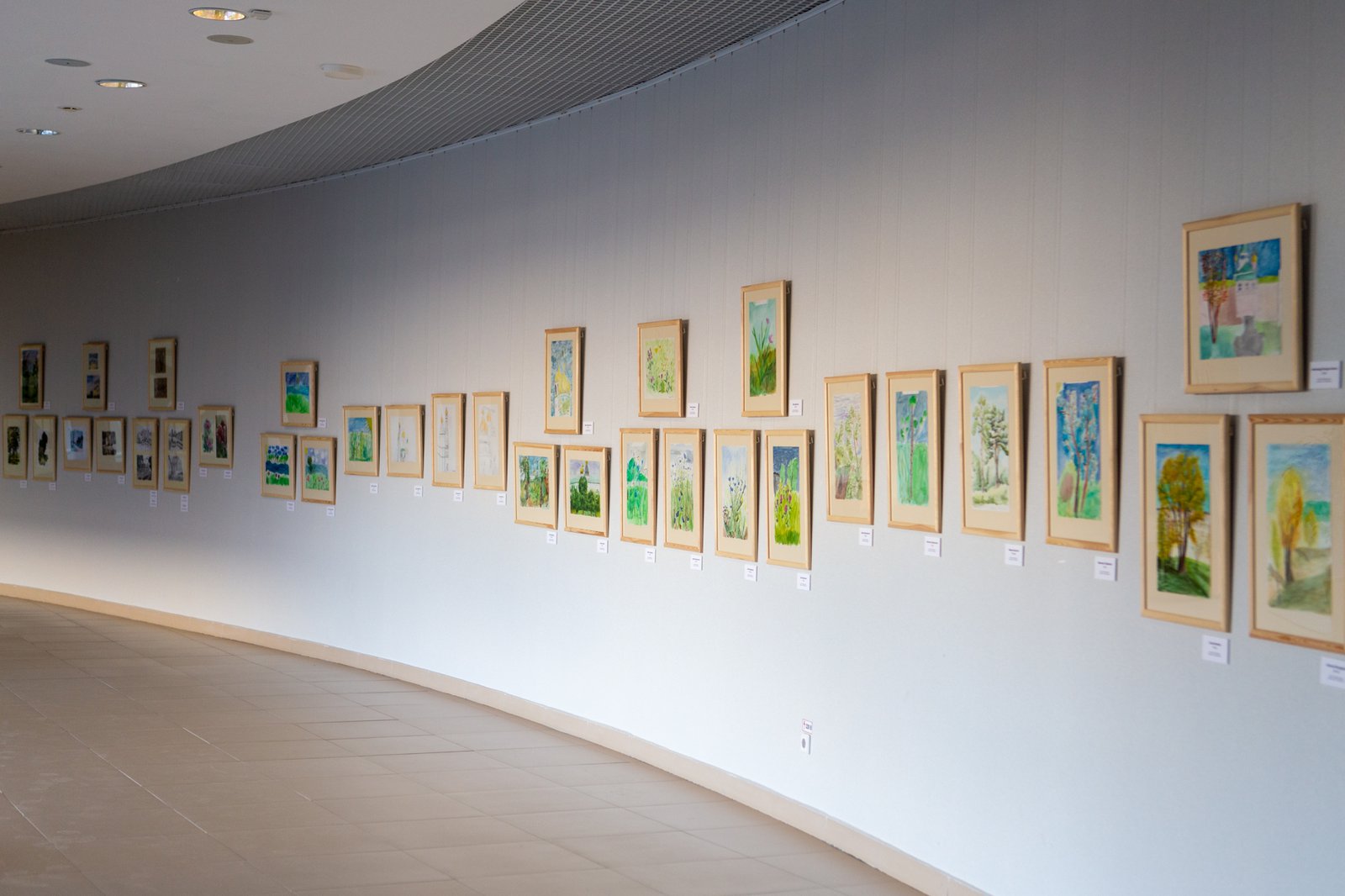 Экспозиция поражает своей яркостью, эмоциональностью, разнообразием, цельностью и гармоничностью, многообразием творческих тем и техник исполнения. Здесь можно увидеть и живопись (акварель, гуашь), и графику (карандаш, пастель). Натюрморты, пейзажи, портреты, сюжетные композиции — все эти жанры и виды изобразительного искусства представляют собой, что важно, цельную экспозицию.