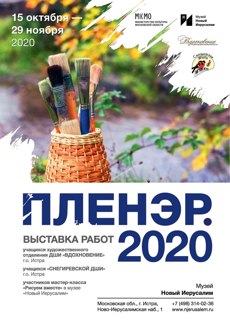 15 октября в фойе музея «Новый Иерусалим» открылась выставка «Пленэр 2020». На ней представлены творческие работы юных и взрослых участников проекта, проходившего в музее летом и осенью 2020 года.