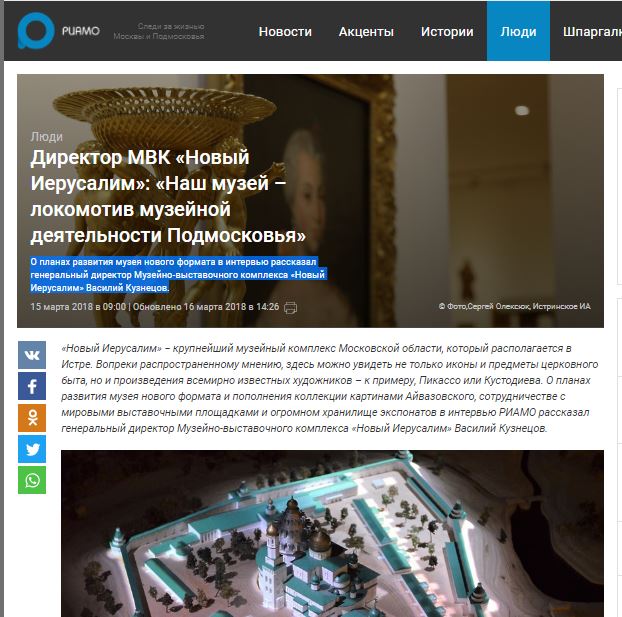 Директор МВК «Новый Иерусалим»: «Наш музей — локомотив музейной деятельности Подмосковья»