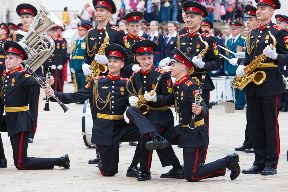 Оркестр суворовцев и ансамбль барабанщиков «Фиеста» легендарного Московского военно-музыкального училища представили произведения разных эпох, стилей и жанров. В концертной программе прозвучали русская и западная классика, патриотическая музыка, джазовые композиции, современные мелодии.