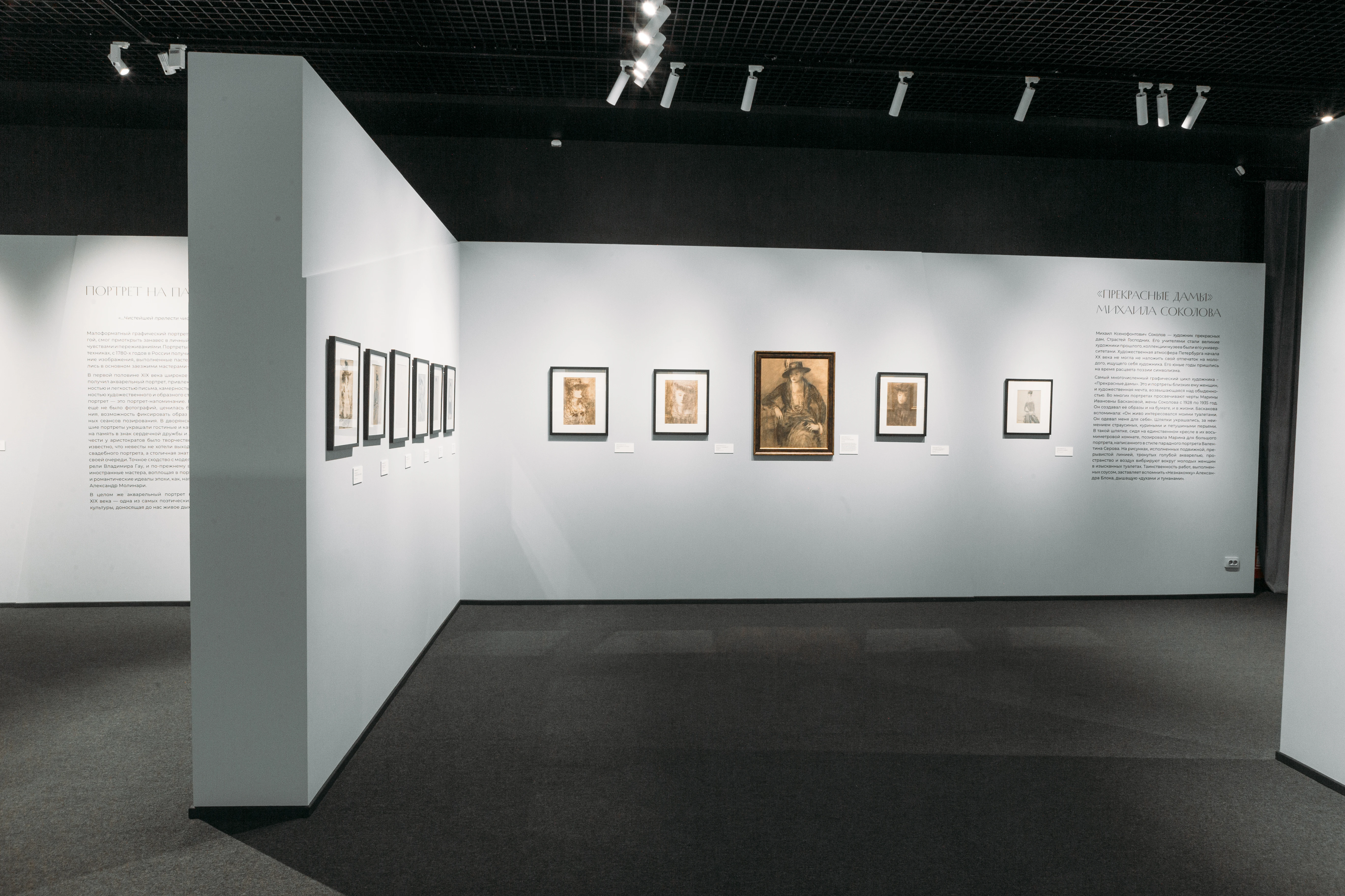 Поэтические образы красавиц XIX века в какой-то степени рифмуются с «Прекрасными дамами» Михаила Соколова (1885–1947). Его экспрессивные рисунки несут в себе иногда черты реальных женщин, но, прежде всего это «воображаемый портрет», возвышенная «художественная мечта».